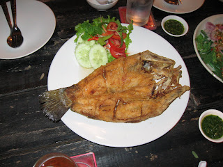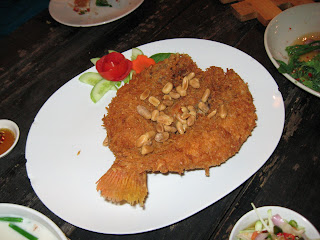There are many variations on crispy-fried fish in Ubon, and this “butterflied” version at Smile is excellent. I think there is a light but well-seasoned breading on the fish. And, it was not over-cooked, so the fish was still moist and flavorful.